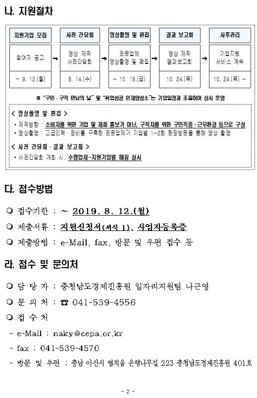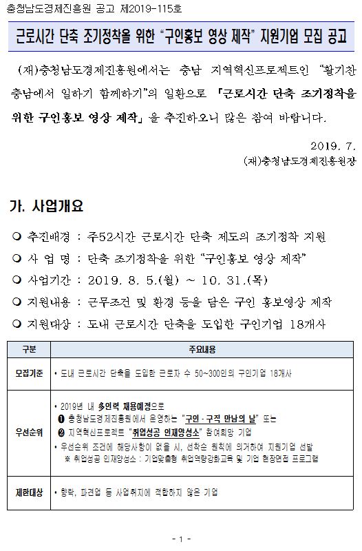 | 근로시간 단축 조기정착을 위한 구인홍보 영상 제작 지원기업 모집 공고 |