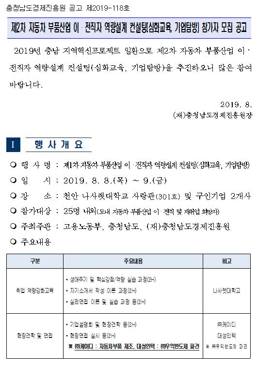 제2차 자동차 부품산업 이전직자 역량설계 컨설팅 참가자 모집 공고