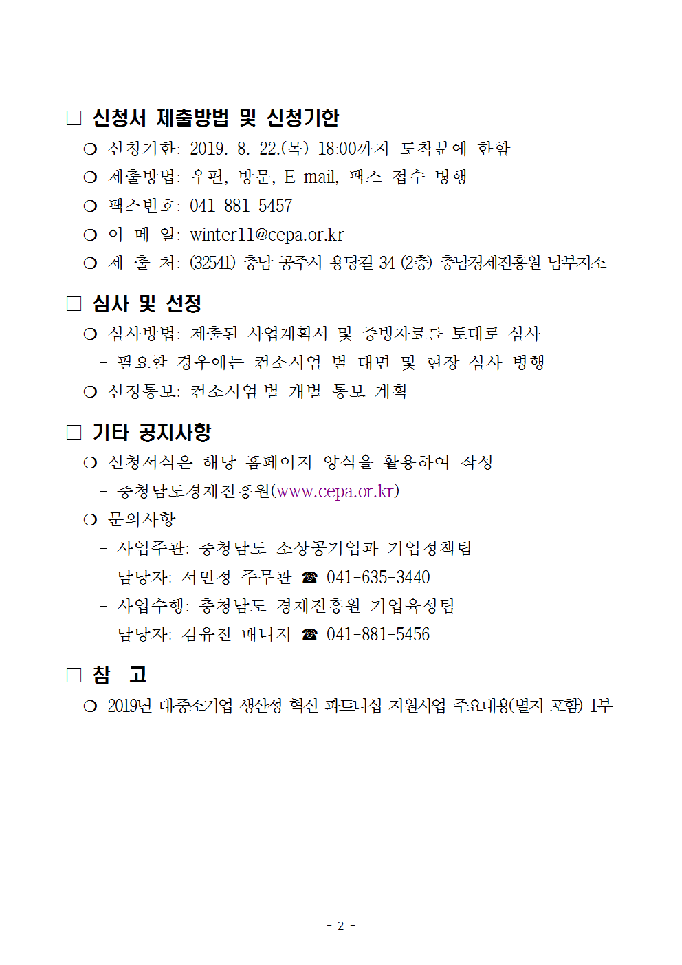| 2019년 대·중소기업 생산성혁신 파트너십 지원사업 참가기업 모집 재공고 |
