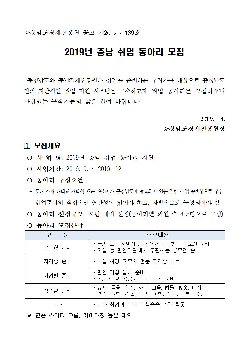 2019 충남 취업 동아리 지원 신청서 양식.hwp
