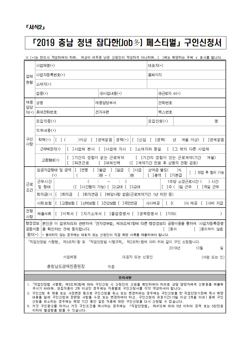 2019 충남 청년 잡다한(Job多) 페스티벌 참가기업 모집공고-서식포함.hwp
