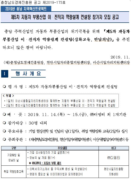 | 제5차 자동차부품산업 이전직자 역량설계 컨설팅 참가자 모집 |