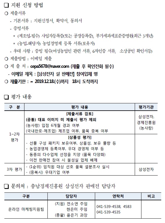 삼성전자 농특산물 명절상품 판매전 참여업체 모집공고