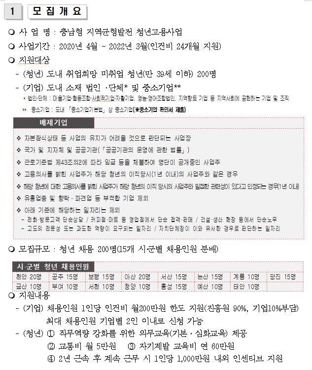 | 충남형 지역균형발전 청년고용 사업참여 기업모집 공고 |