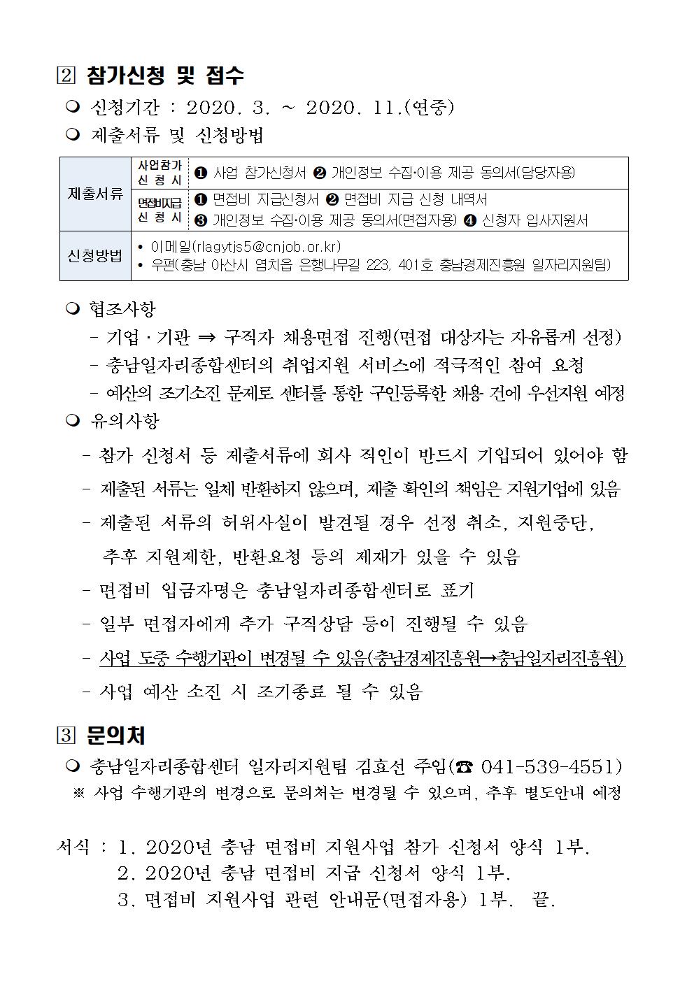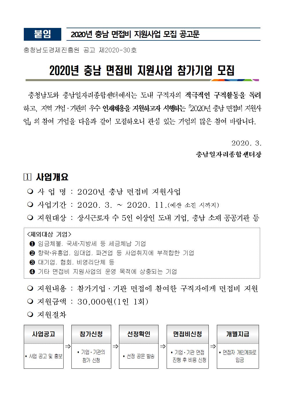 | 2020년 충남 면접비 지원사업 참가기업 모집 공고 |