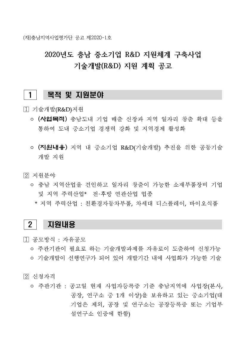 | [충남지역사업평가단]2020년도 충남 중소기업 R&D 지원체계 구축사업 |