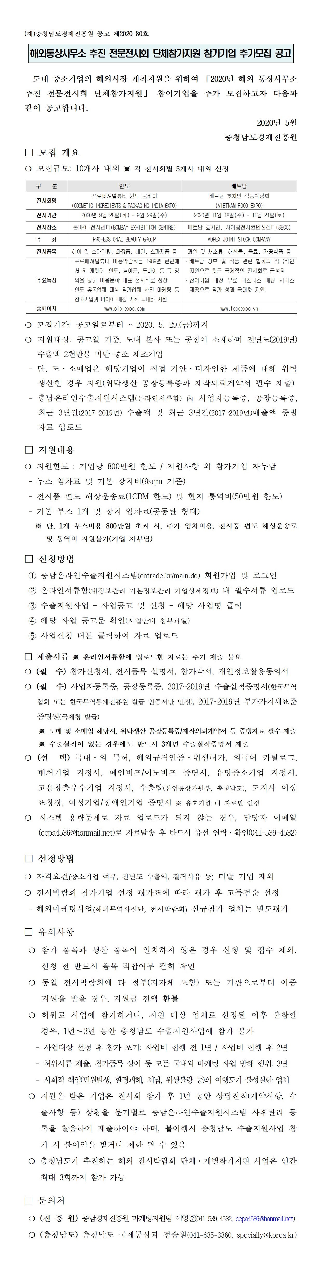 충청남도 해외 통상사무소 추진 전문전시회 참가기업 추가모집 공고문 및 참가신청서.pdf