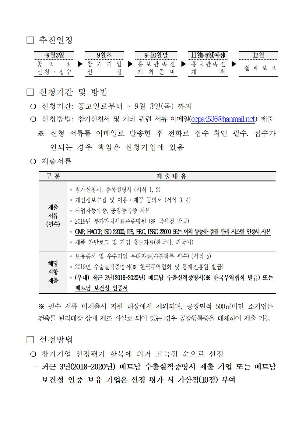 | 2020년 베트남(하노이) 홍보판촉전 참가기업 모집 |