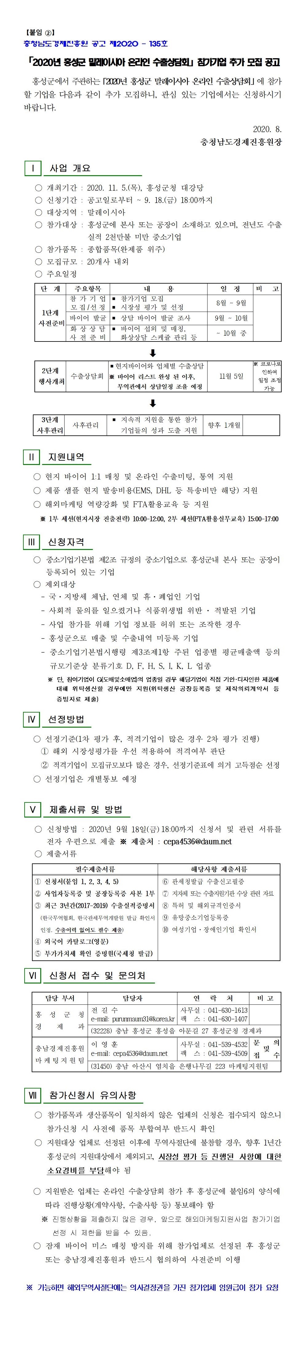 | 2020년도 홍성군 말레이시아 온라인 수출상담회 참가기업 추가모집 공고 |