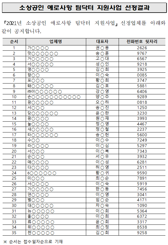 붙임 소상공인 애로사항 팀닥터 지원업체 선정결과.pdf