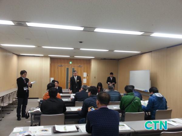 | | 시즈오카현 관계자들로 부터 지산지소 운동 등의 현황 설명을 듣고 있다. |