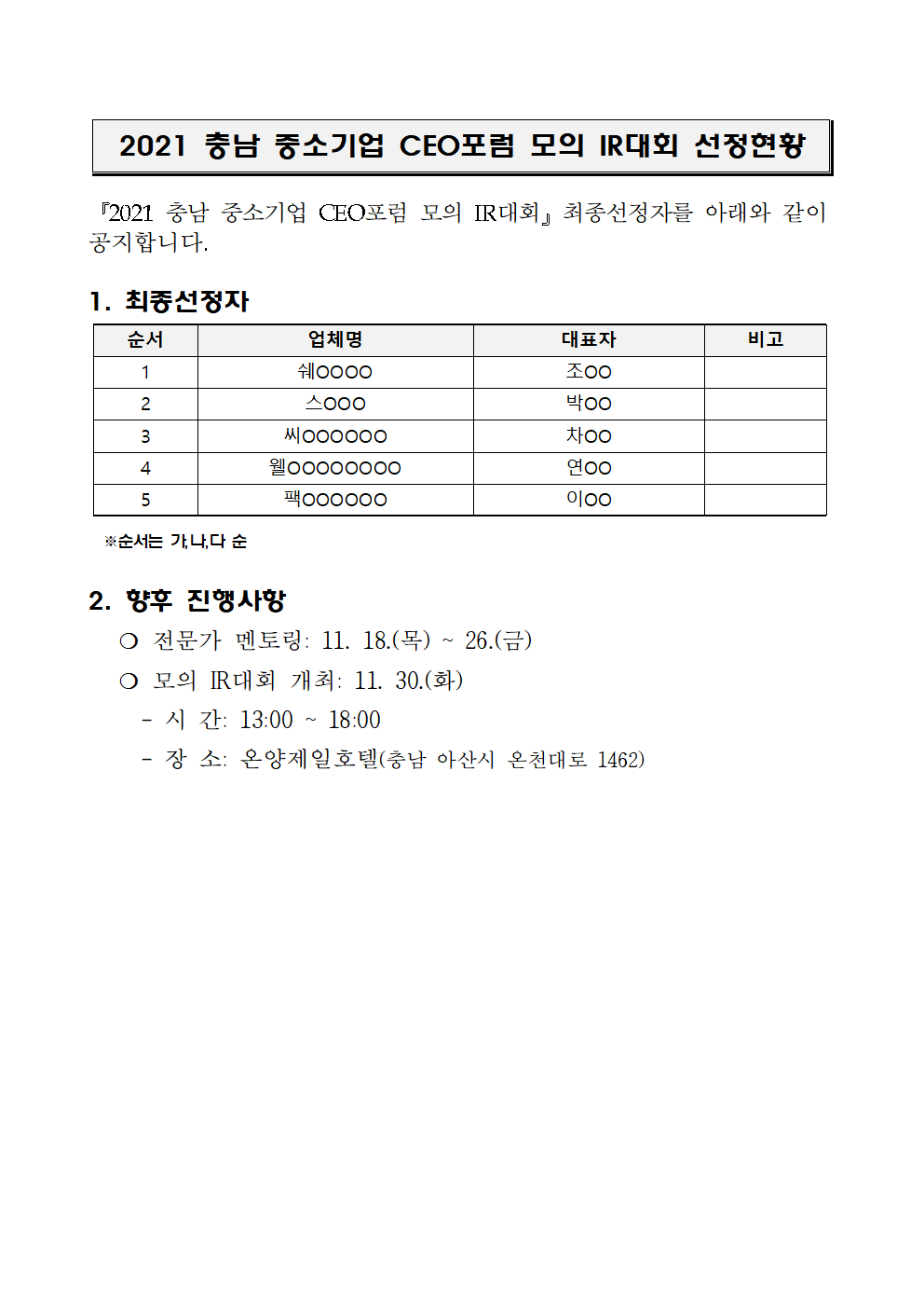 2021 충남 중소기업 CEO포럼 모의 IR대회 선정결과.hwp