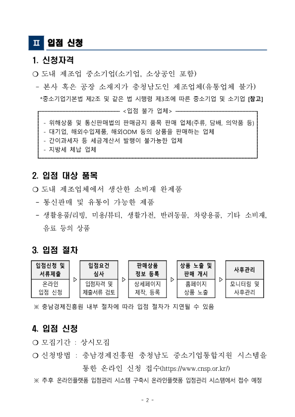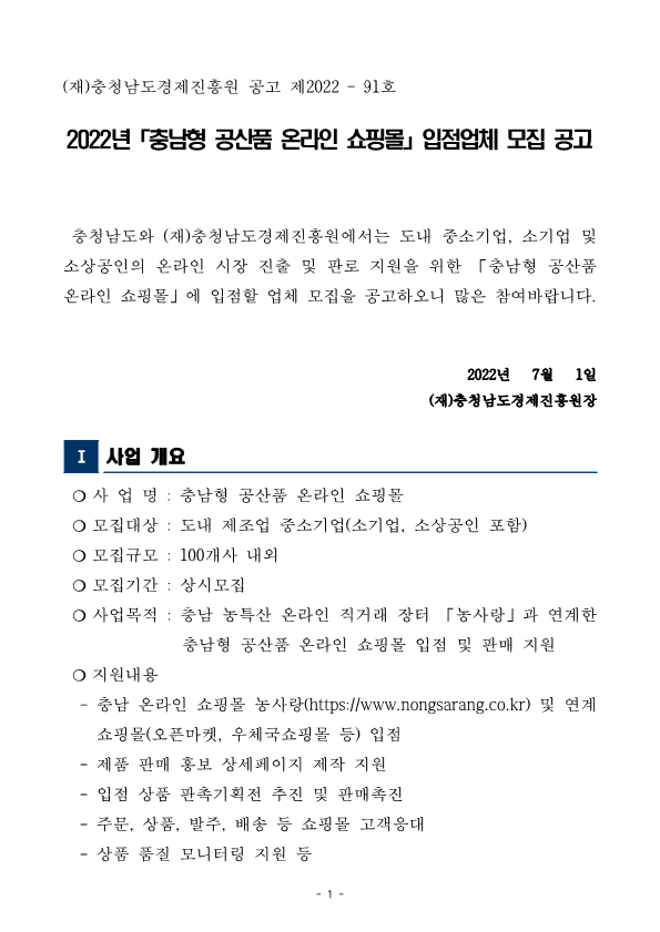 | [충남형 공산품 온라인 쇼핑몰] 입점 업체(제품) 모집 |