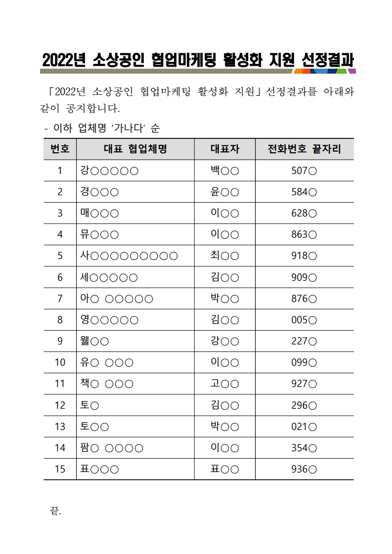 2022년 소상공인 협업마케팅 활성화 지원사업 선정결과