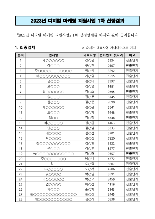 2023년 디지털 마케팅 지원사업 1차 선정결과