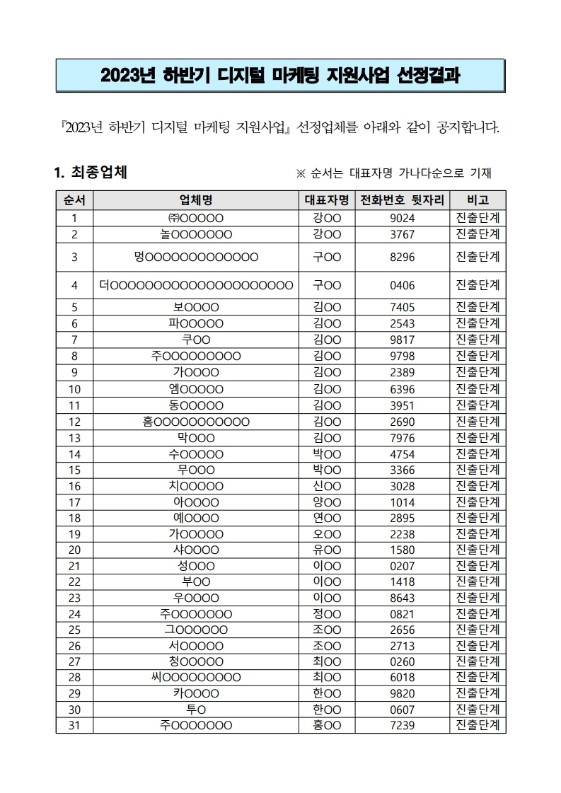 2023년 하반기 디지털 마케팅 지원사업 선정결과