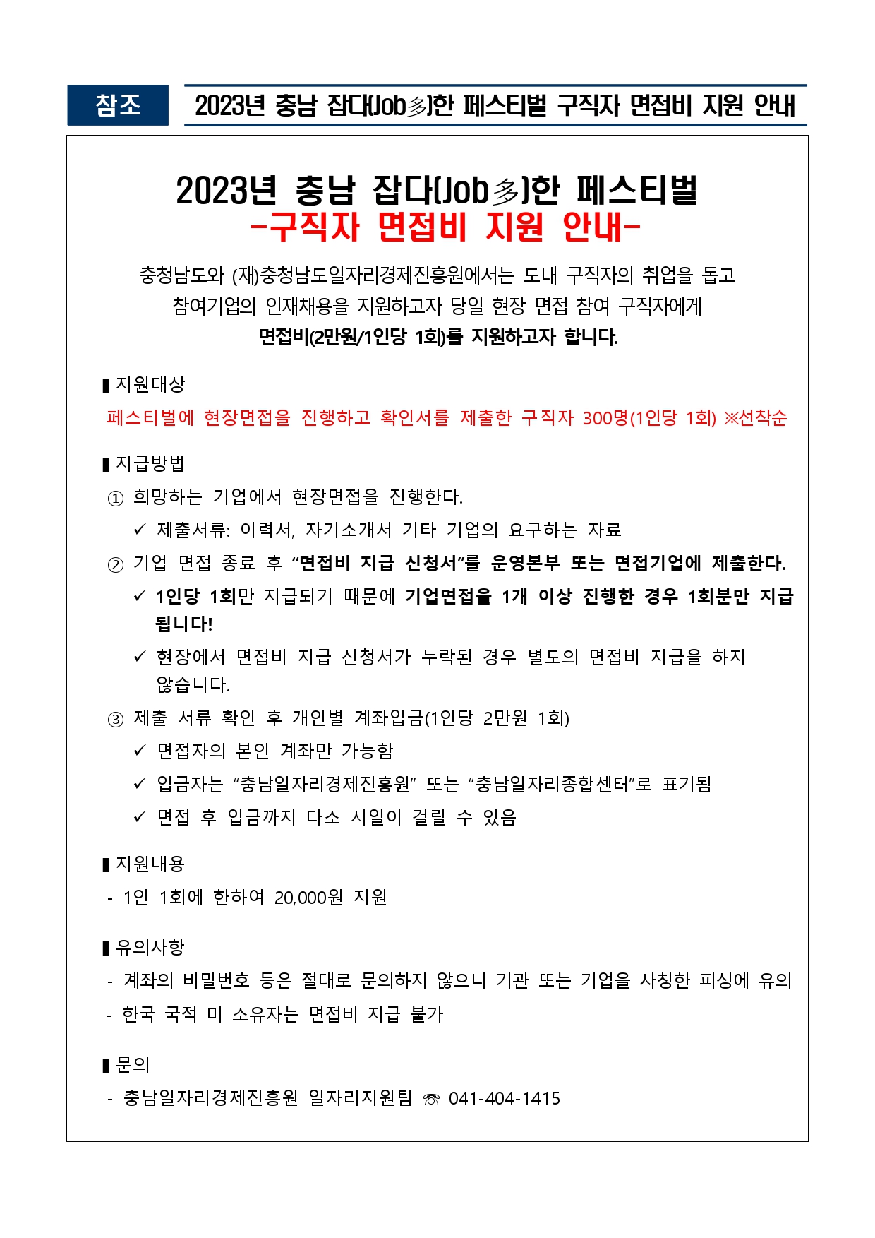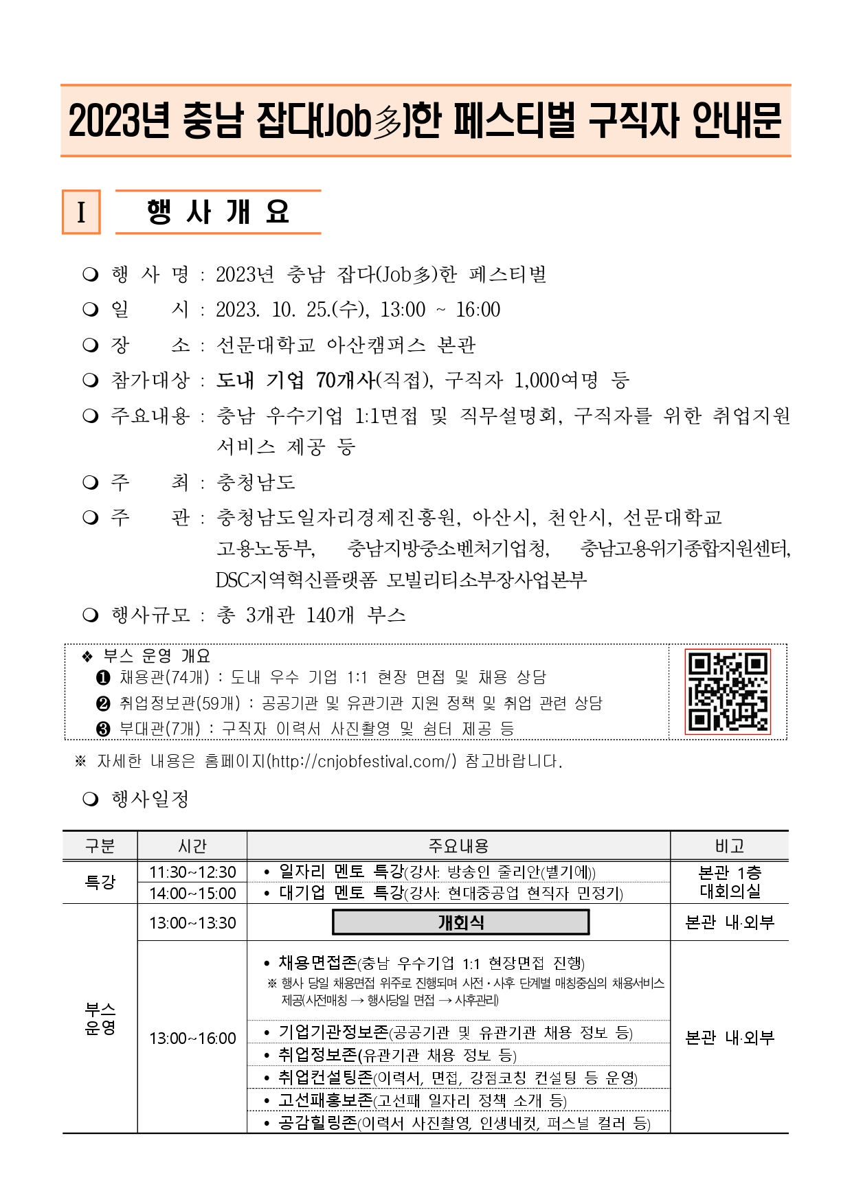 | 2023년 충남 잡다(Job多)한 페스티벌 구직자 참여 안내문 |
