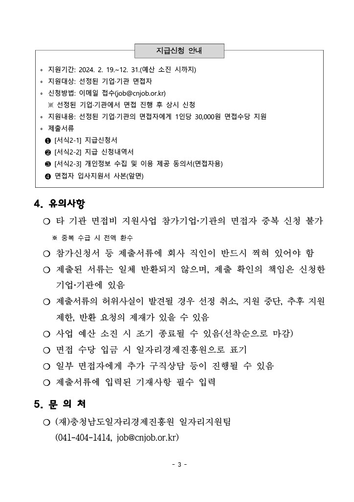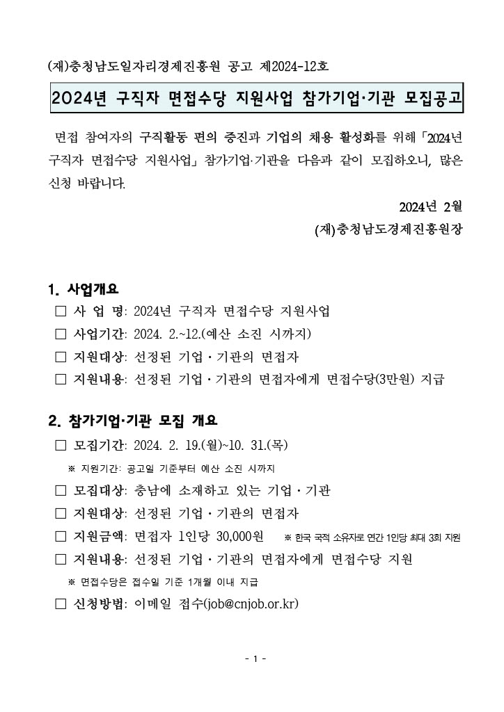 | 2024년 구직자 면접수당 지원사업 참가기업·기관 모집 공고 |