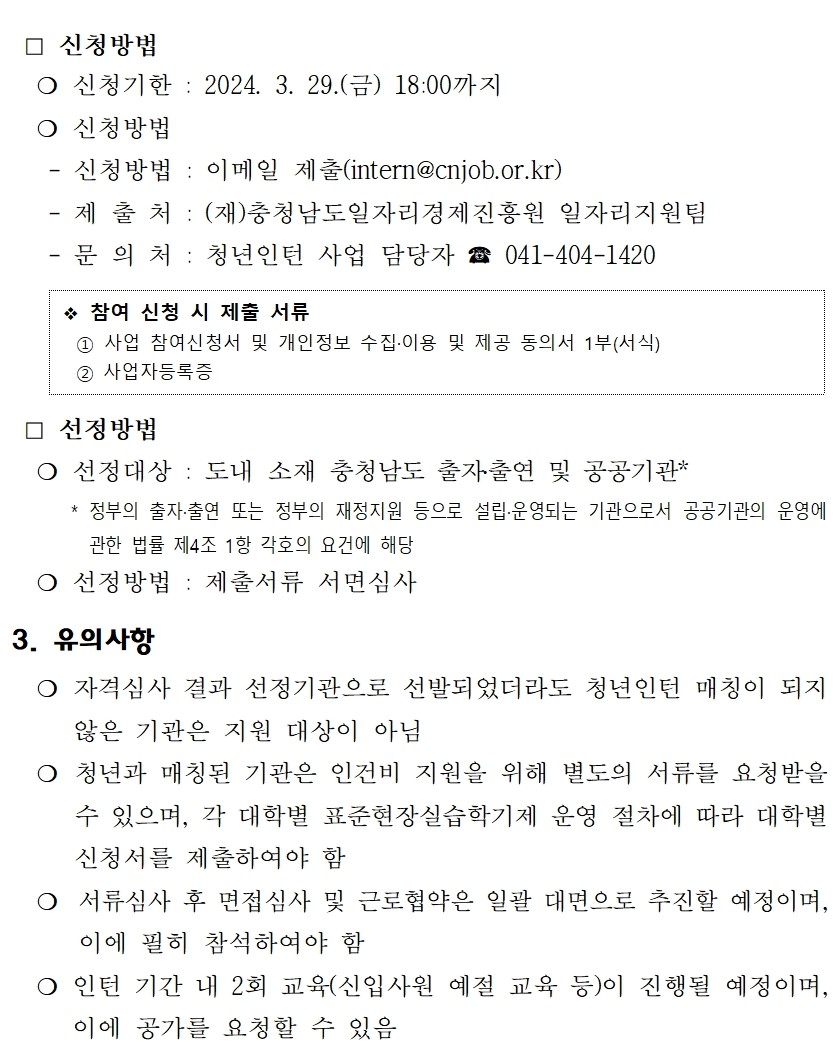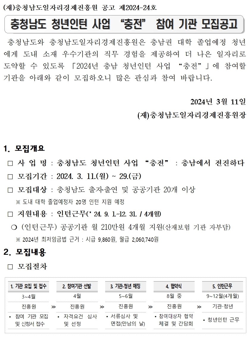 | 충청남도 청년인턴 사업 “충전” 참여 기관 모집 |