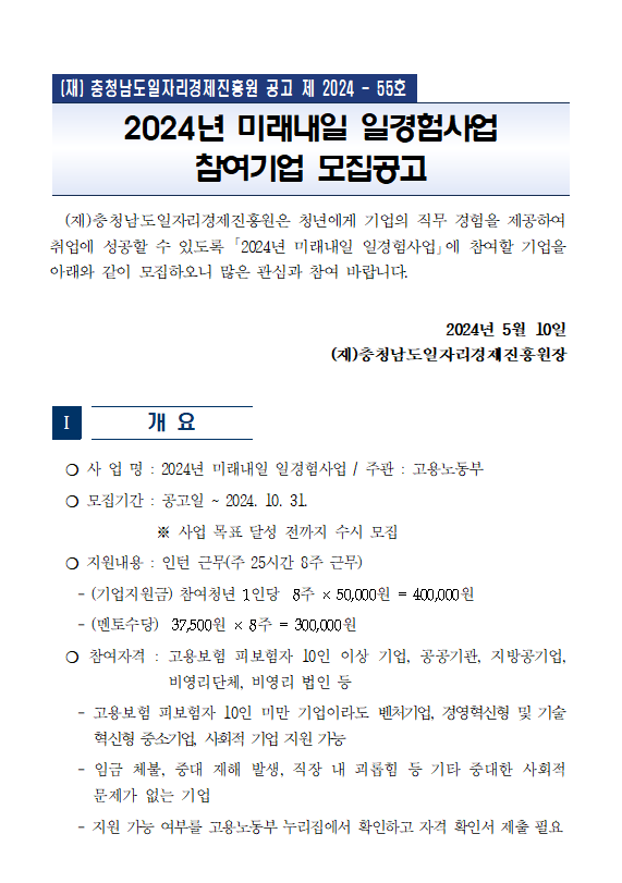 | 2024년 미래내일 일경험사업 참여기업 모집공고 |
