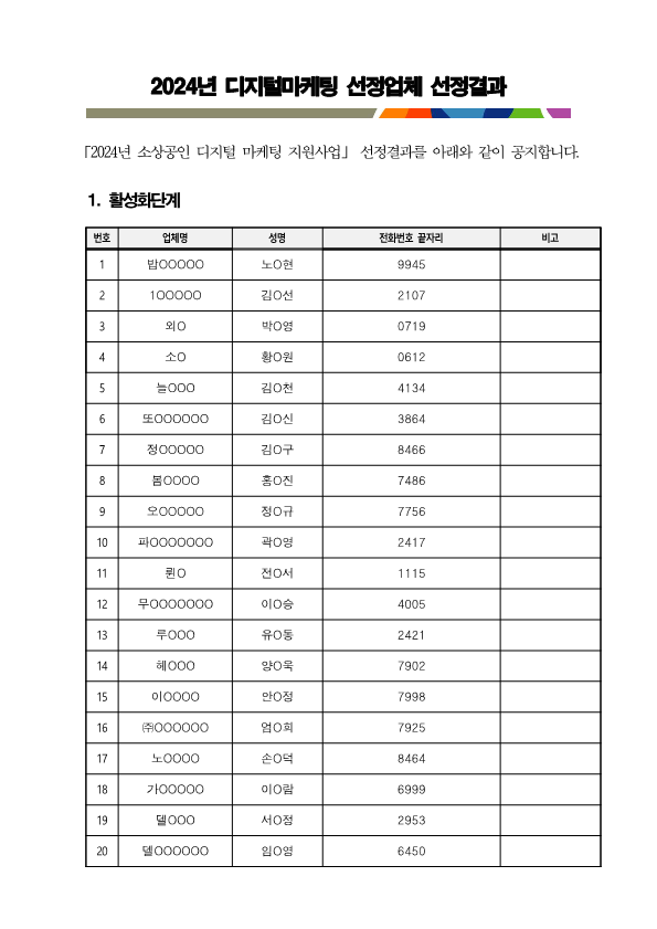 | 2024년 소상공인 디지털마케팅 지원사업(활성화 단계) 선정결과 |