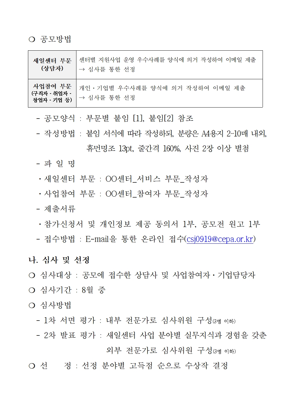 | 2024년 도내 새일센터 취·창업 지원 우수사례 공모 |