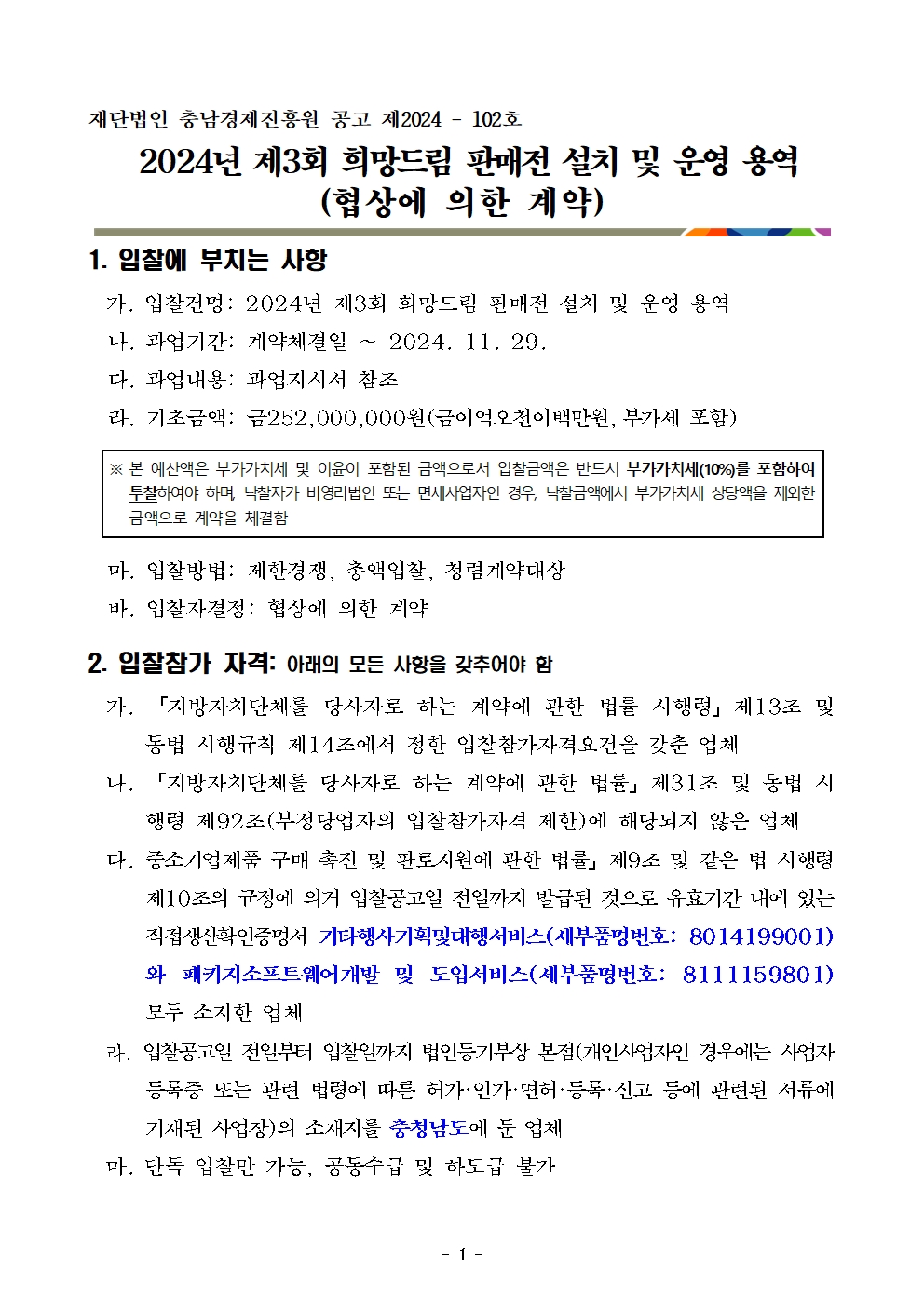 | 2024년 제3회 희망드림 판매전 용역 입찰 공고 |