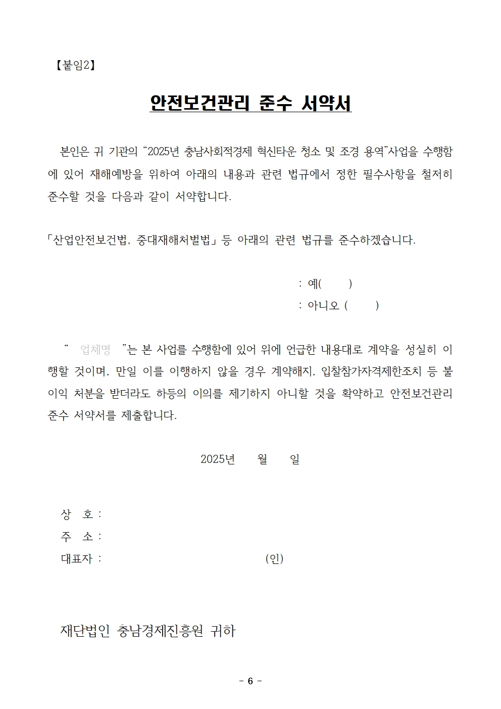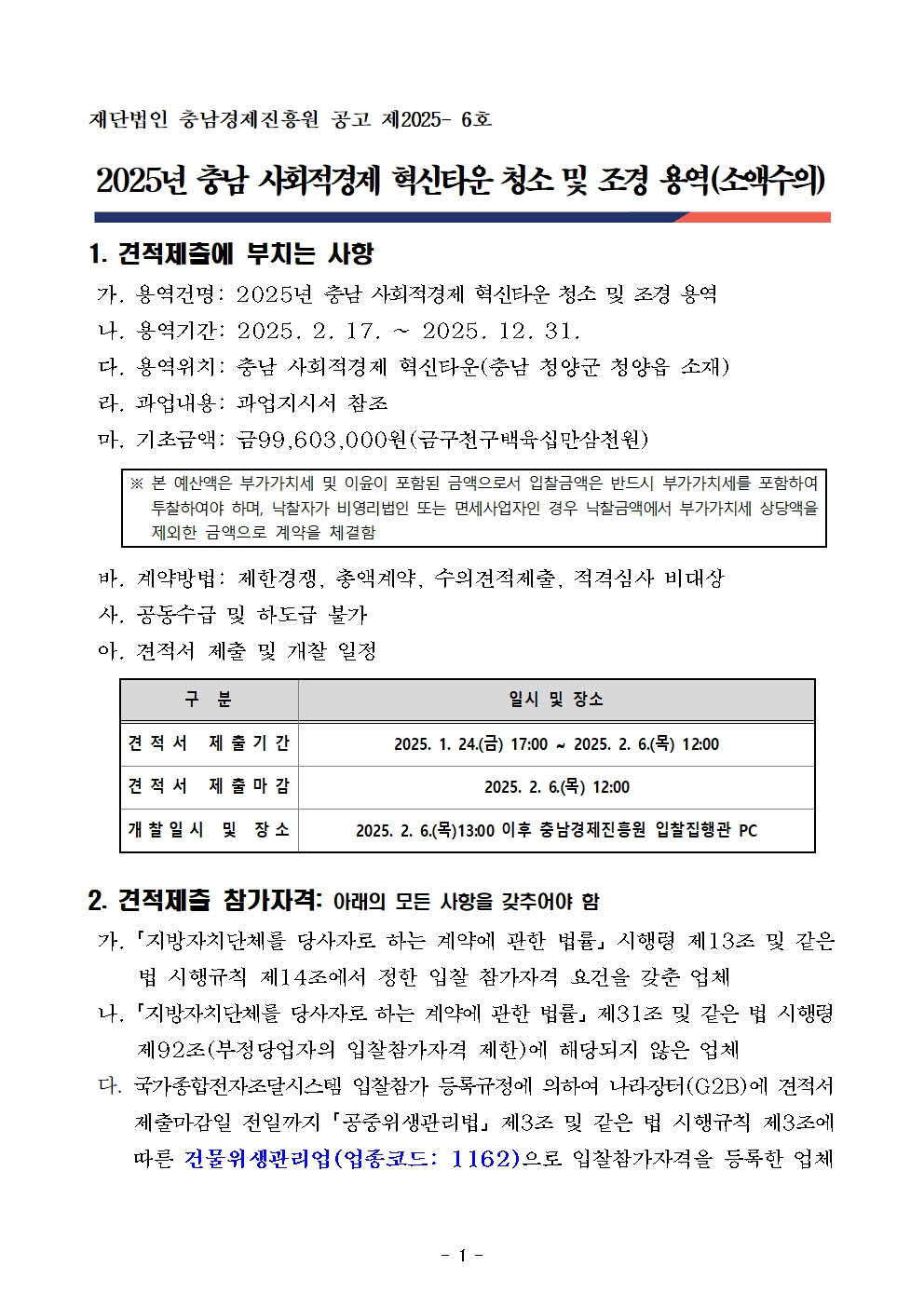 | 2025년 충남 사회적경제 혁신타운 청소 및 조경 용역(소액수의) |