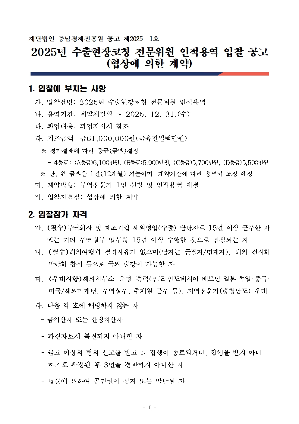 | 2025년 충남FTA통상진흥센터 수출현장코칭 전문위원 인적용역 입찰공고 |