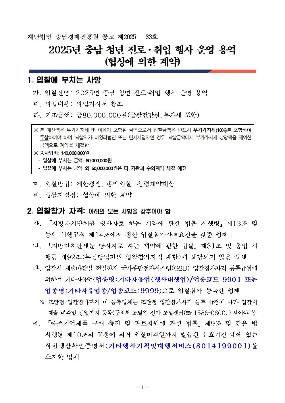 | 2025년 충남 청년 진로·취업 행사 운영 용역 |