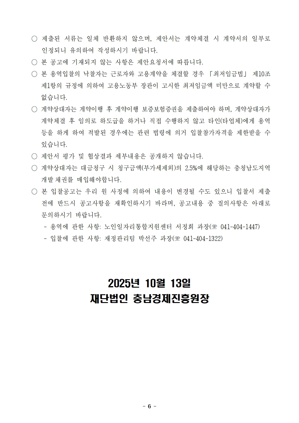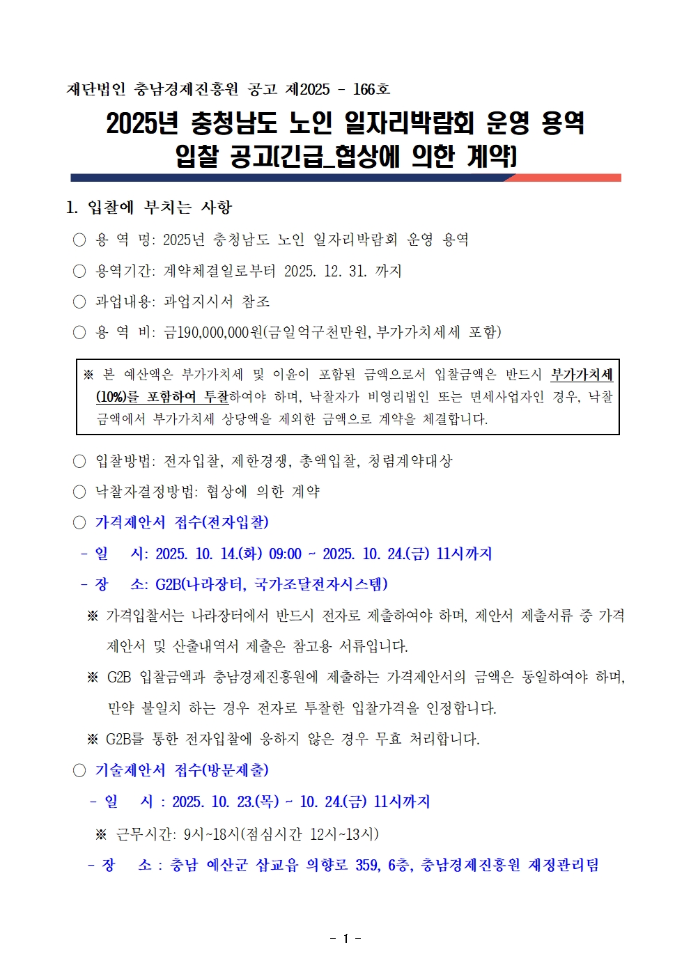 | 2025년 충청남도 노인 일자리박람회 운영 용역 입찰 공고 |