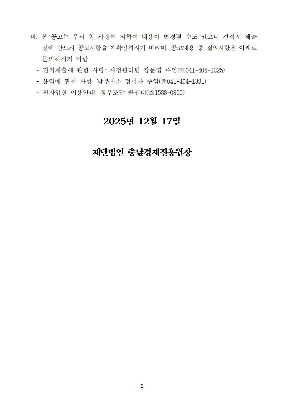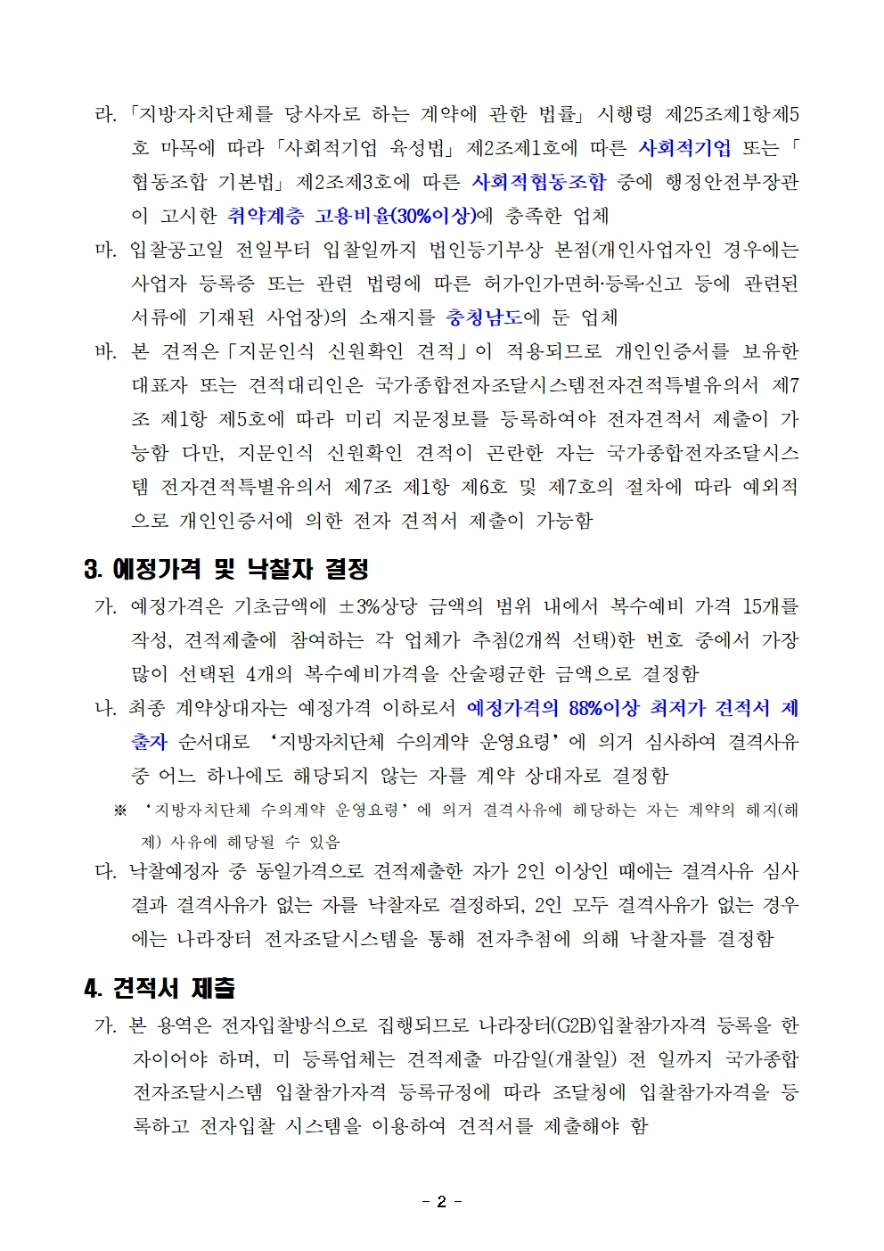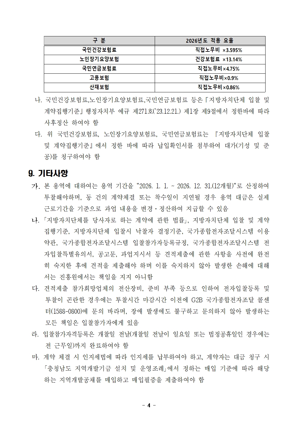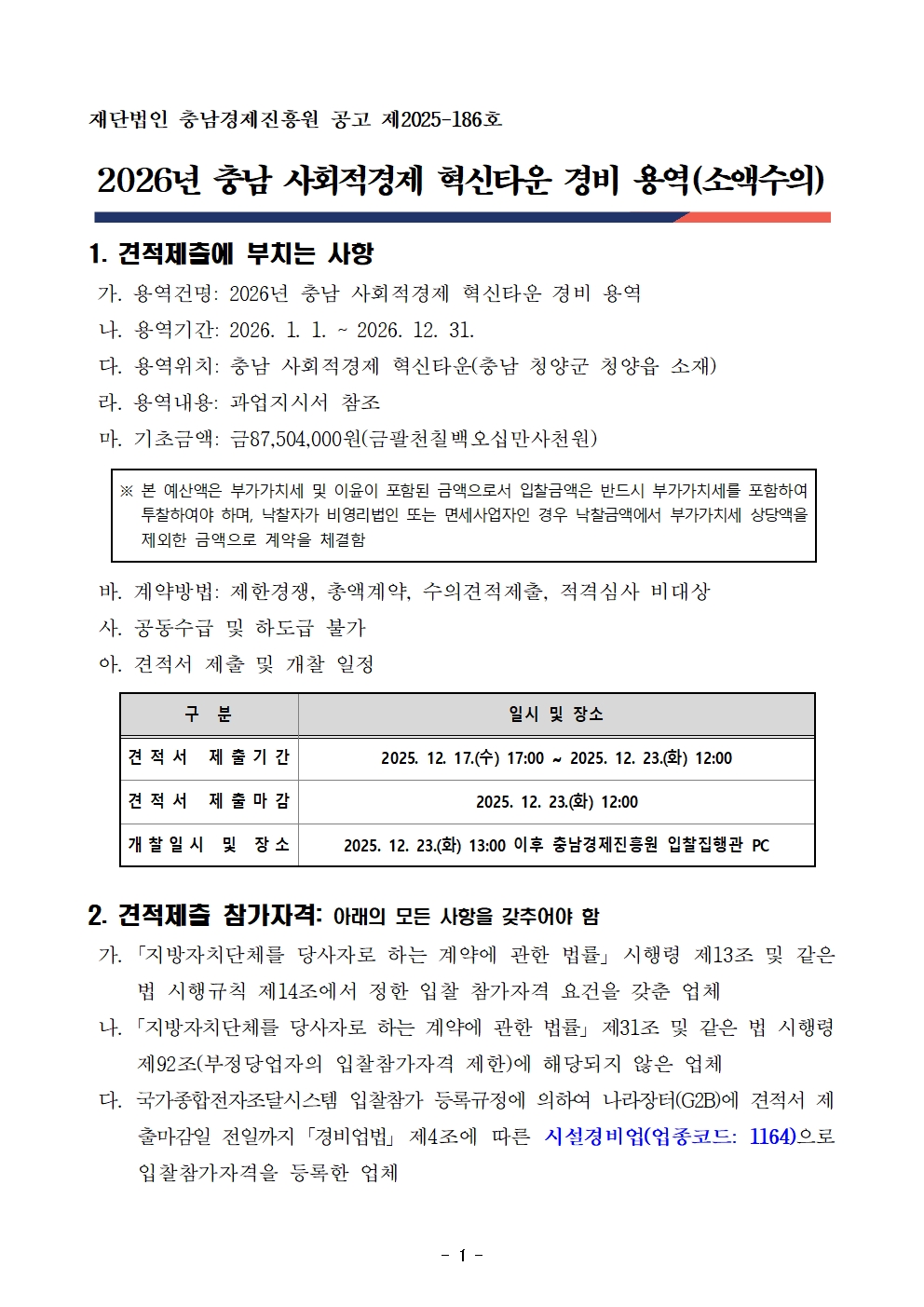 2026년 충남 사회적경제 혁신타운 경비 용역 소액수의 공고