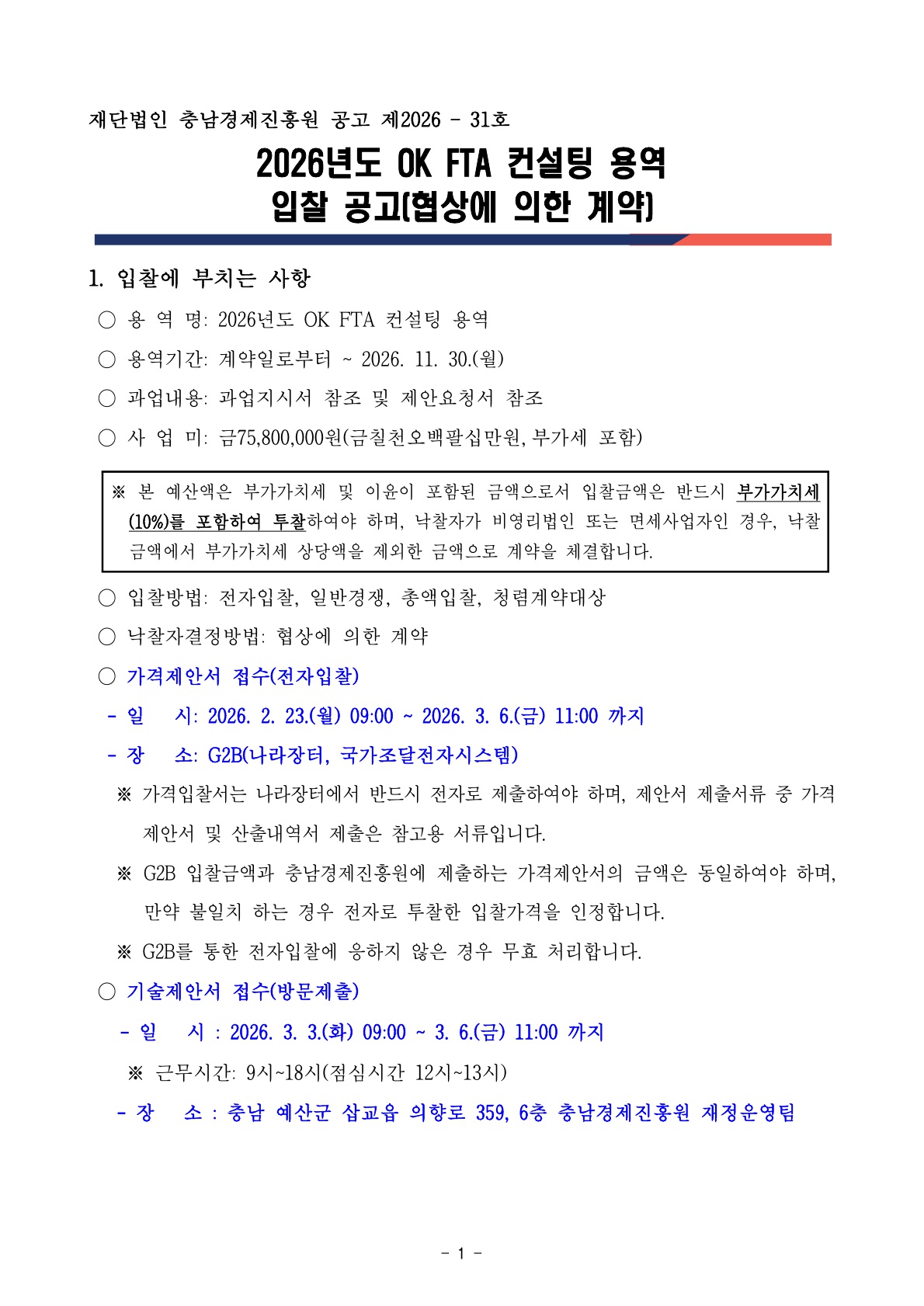 | 2026년도 OK FTA 컨설팅 용역 입찰공고 |