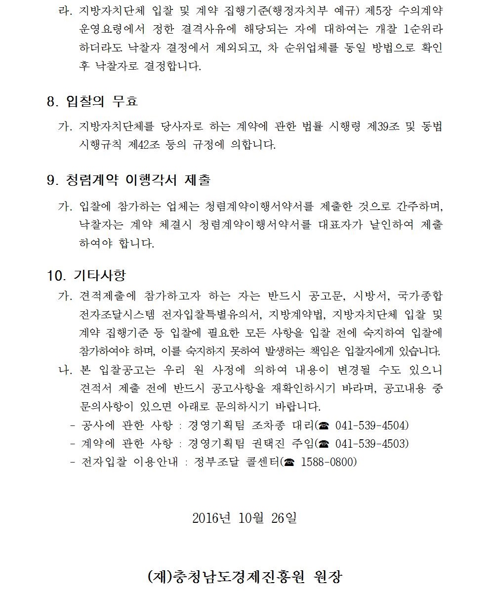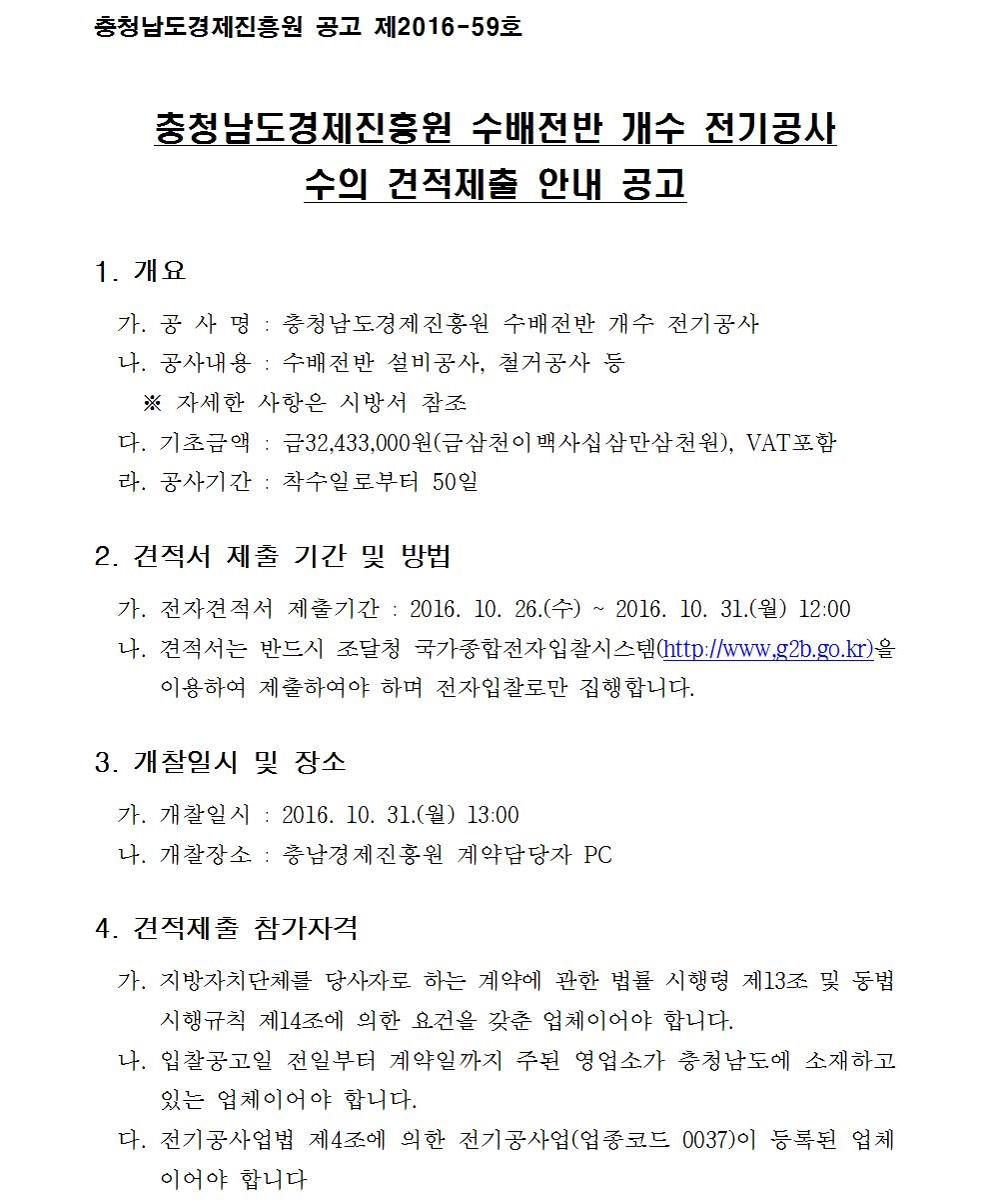 충청남도경제진흥원 수배전반 개수 전기공사 입찰 공고