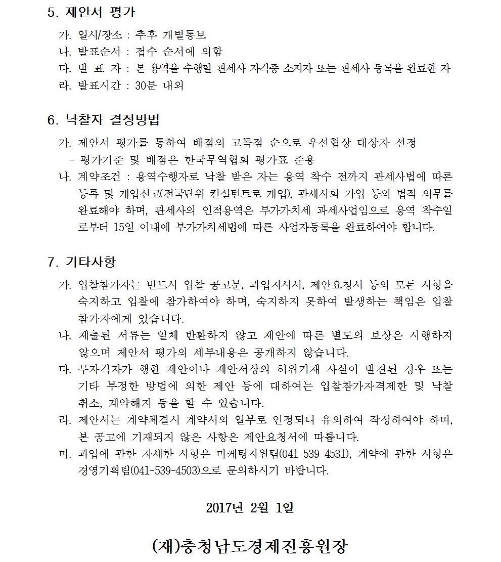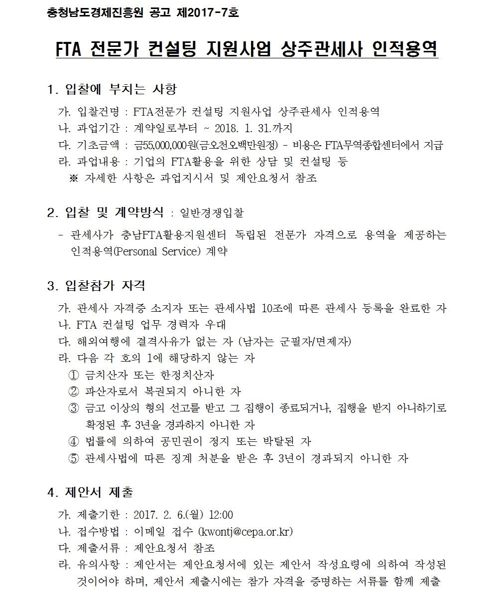 FTA 전문가 컨설팅 지원사업 상주관세사 인적용역 입찰 공고