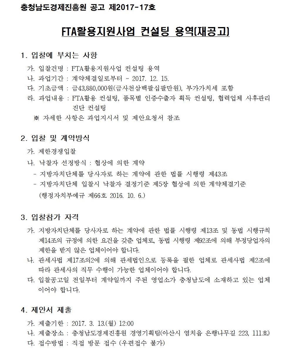 FTA활용지원사업 컨설팅 용역 입찰 재공고