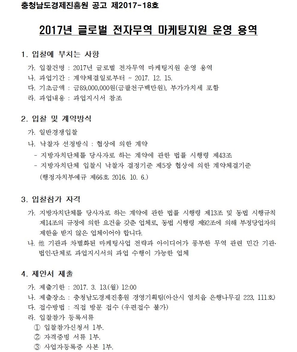 2017년 글로벌 전자무역 마케팅지원 운영 용역 입찰 공고
