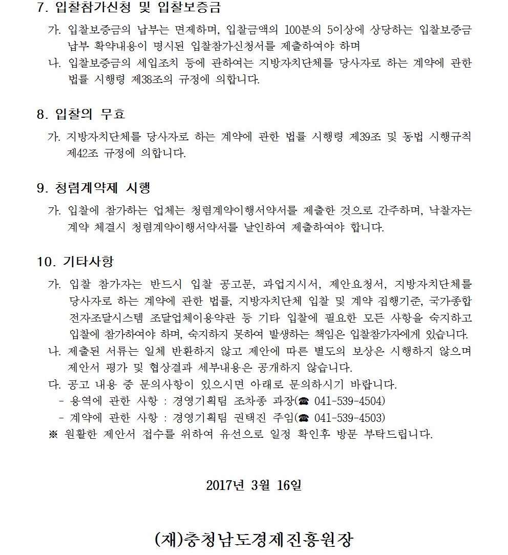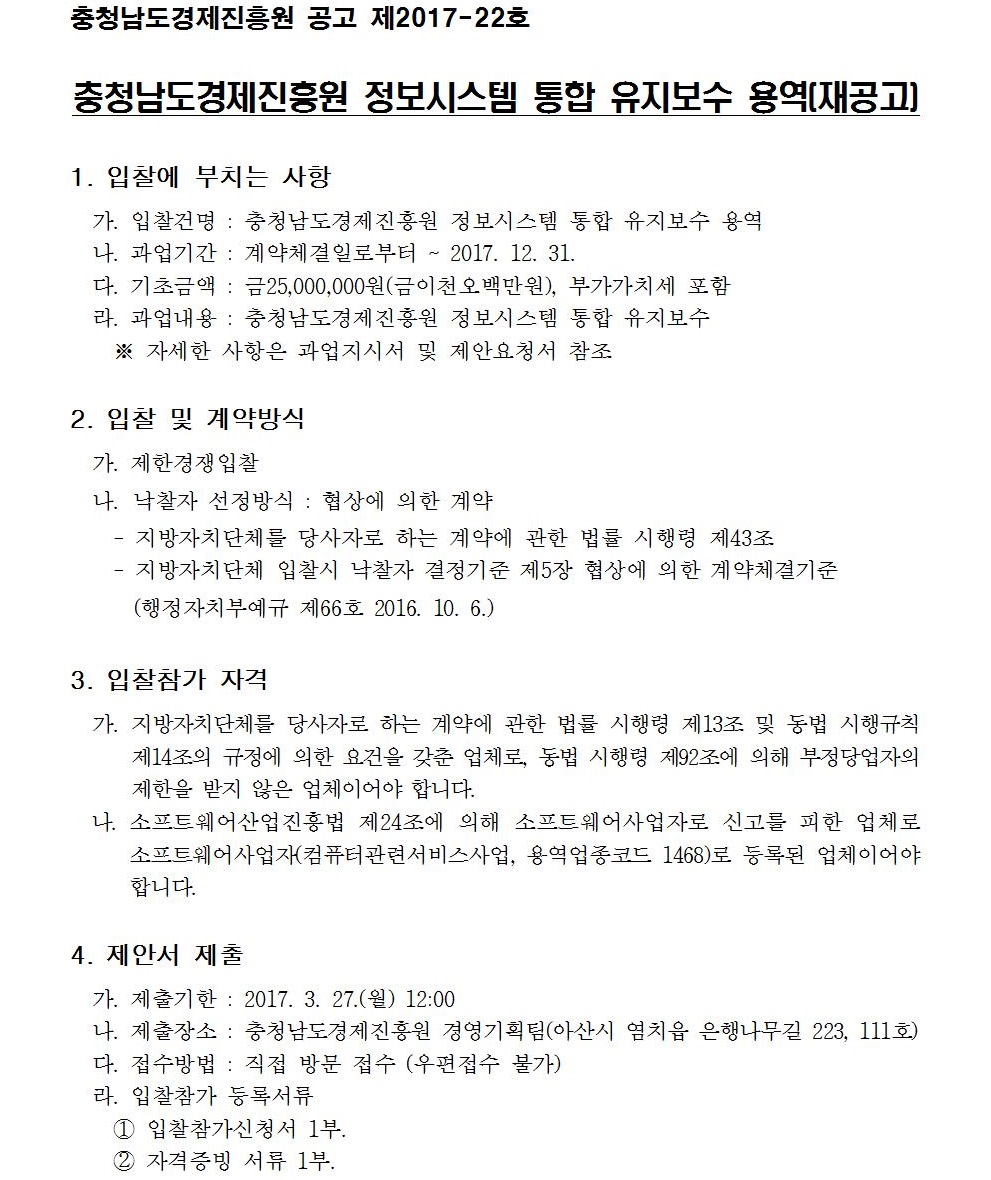 충청남도경제진흥원 정보시스템 통합 유지보수 용역 입찰 재공고