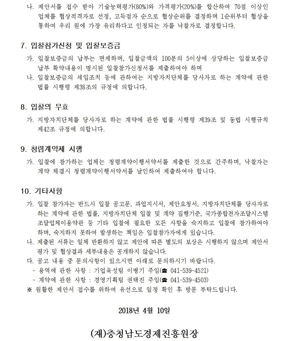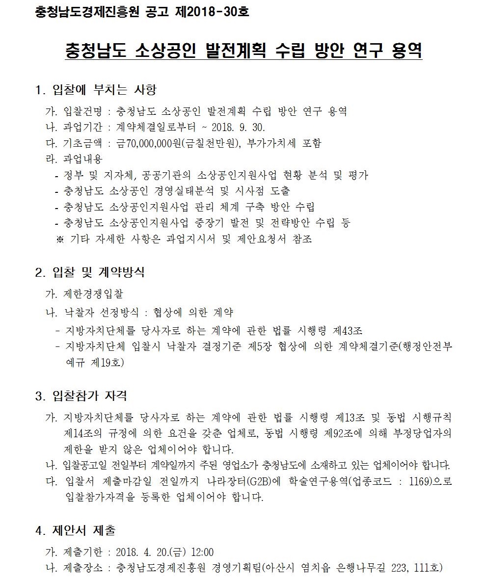 충청남도 소상공인 발전계획 수립 방안 연구 용역 입찰 공고