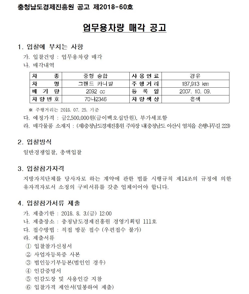 업무용차량 매각 공고