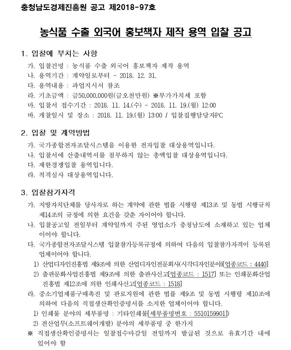 농식품 수출 외국어 홍보책자 제작 용역 입찰 공고