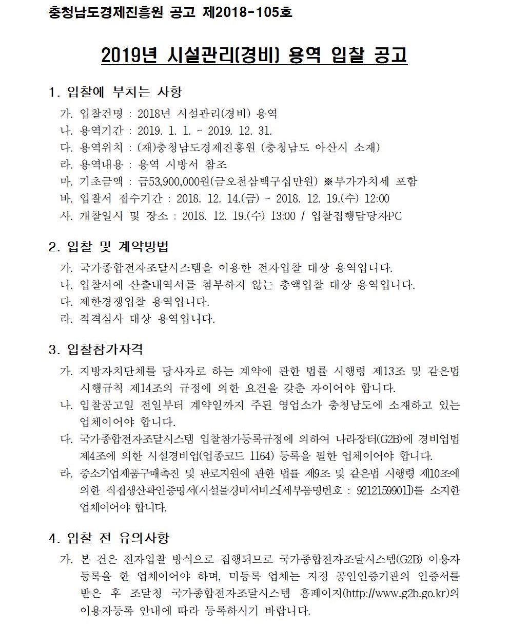 2019년 시설관리(경비) 용역