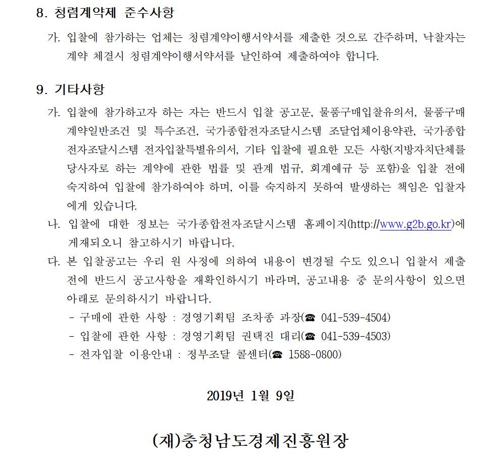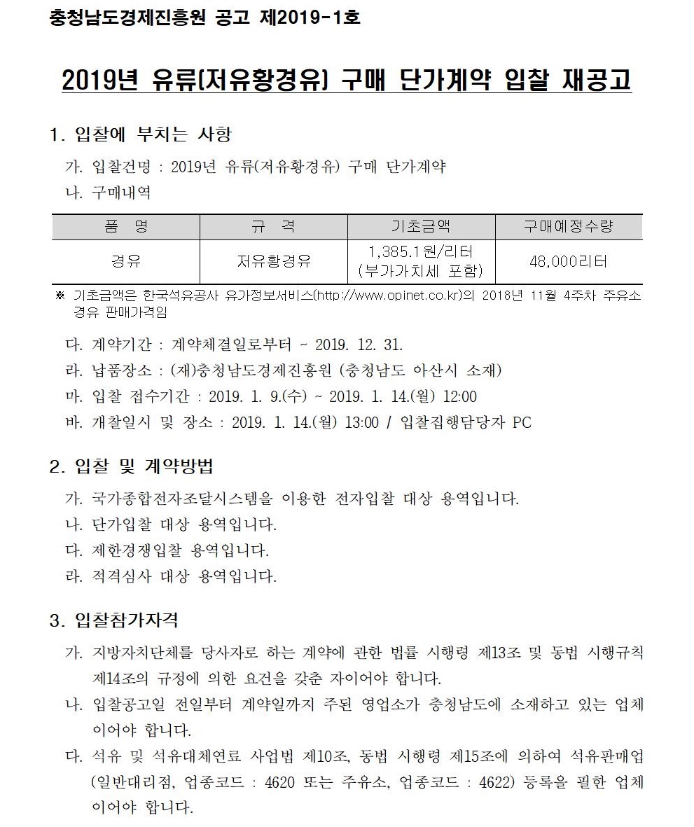 2019년 유류(저유황경유) 구매 단가계약 입찰 재공고