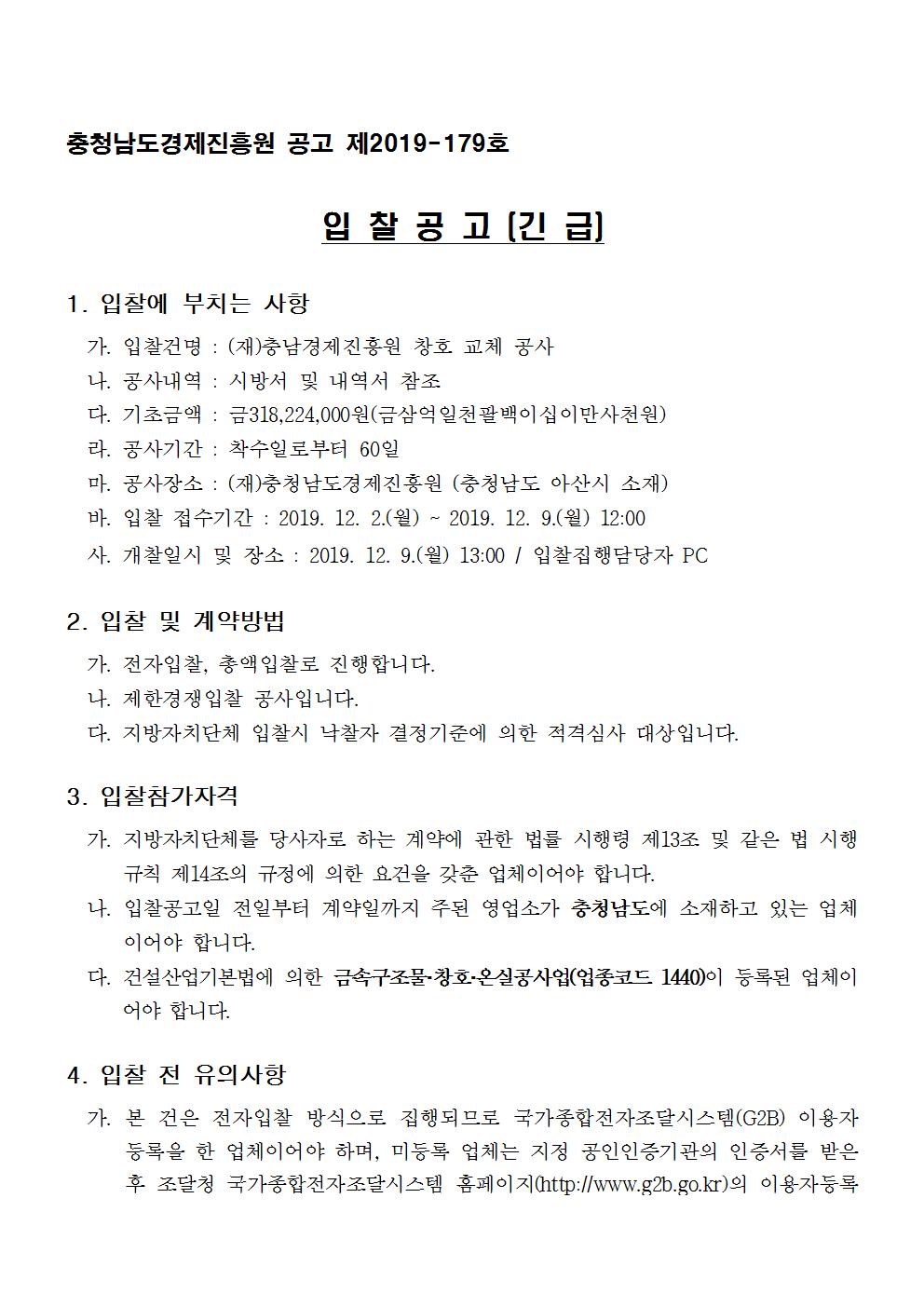 (재)충남경제진흥원 창호 교체 공사 입찰 공고
