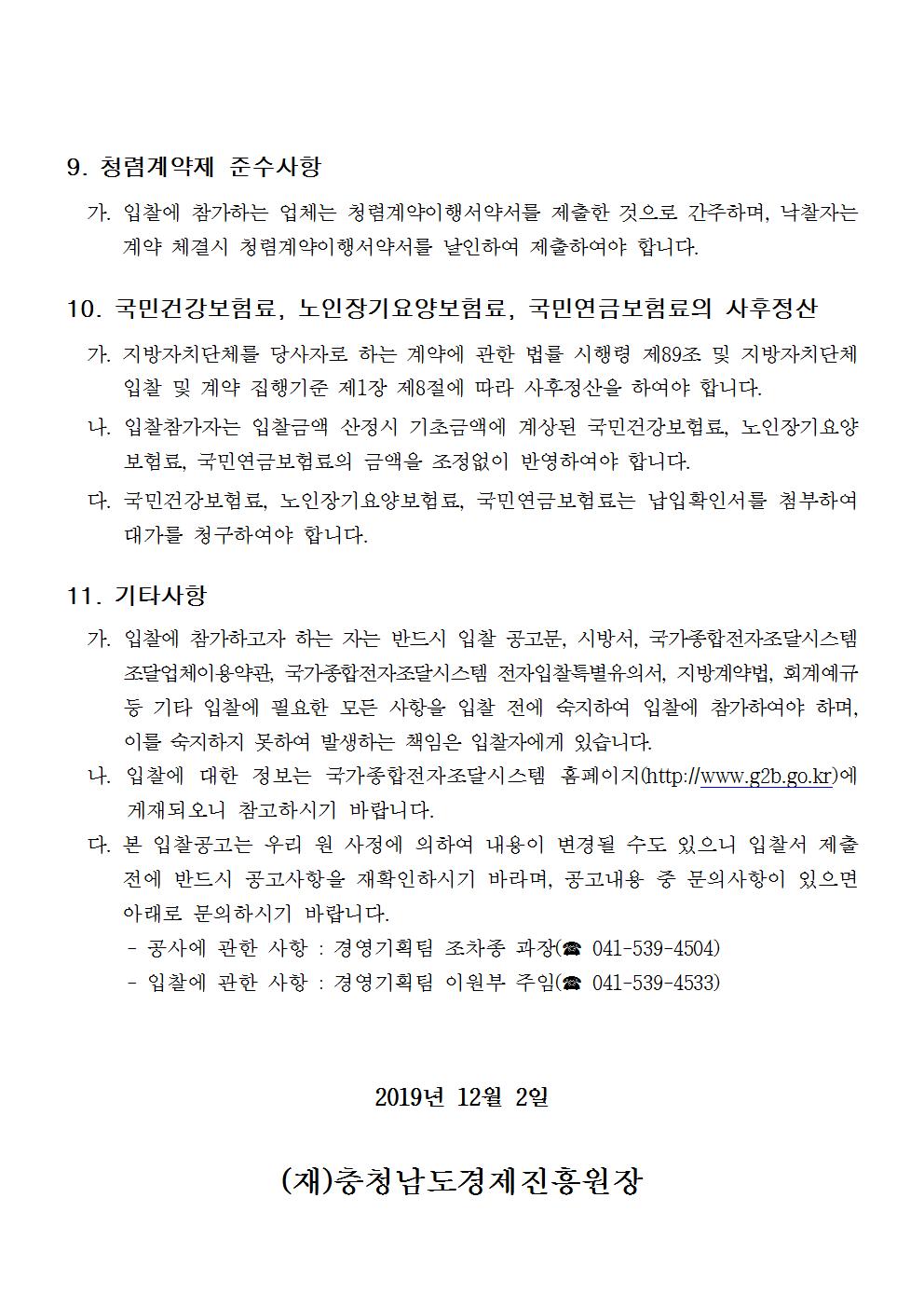 (재)충남경제진흥원 창호 교체 공사 입찰 공고(긴급)(변경)