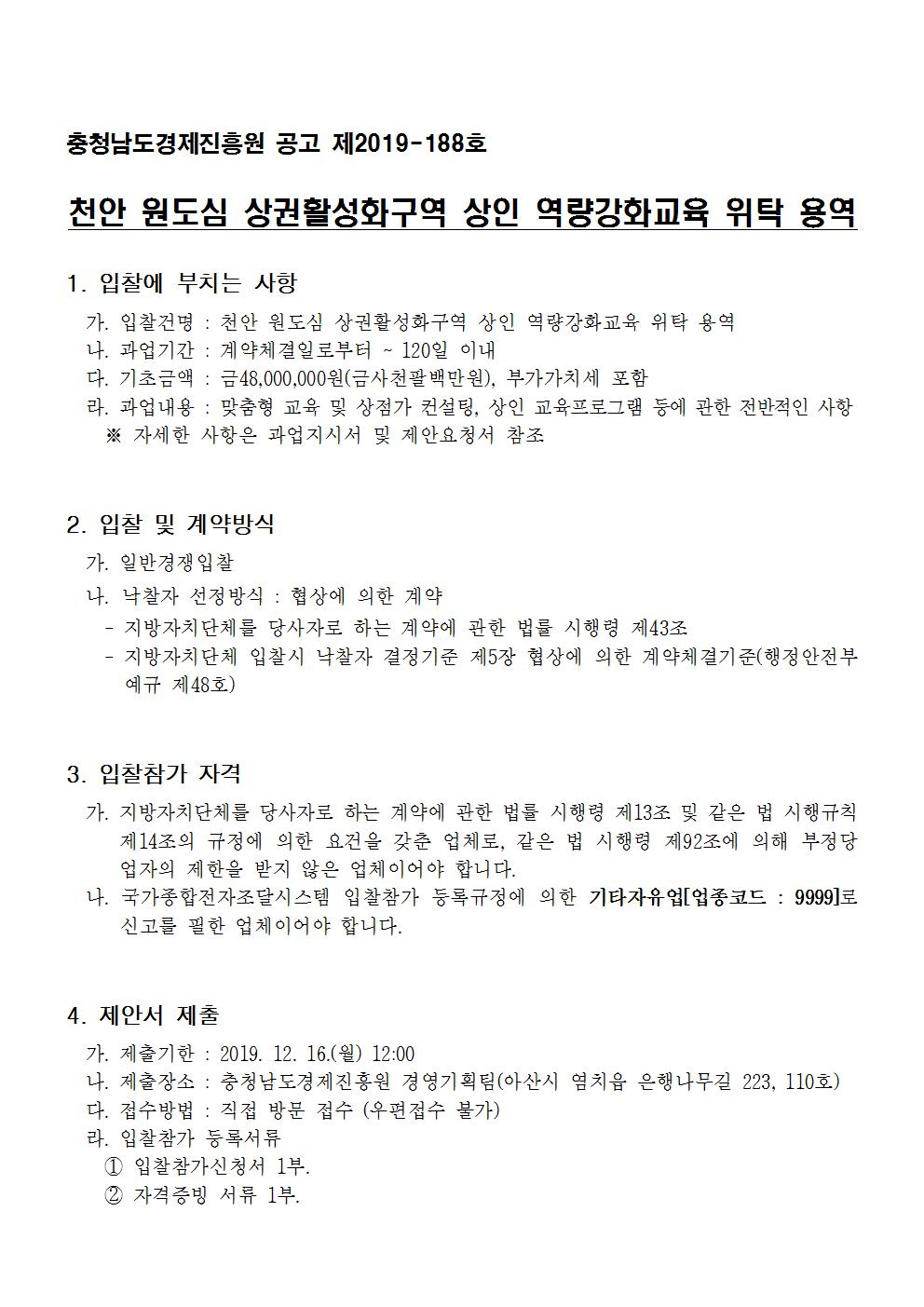 1. 공고문(천안 원도심 상권활성화구역 상인 역량강화교육 위탁용역).pdf