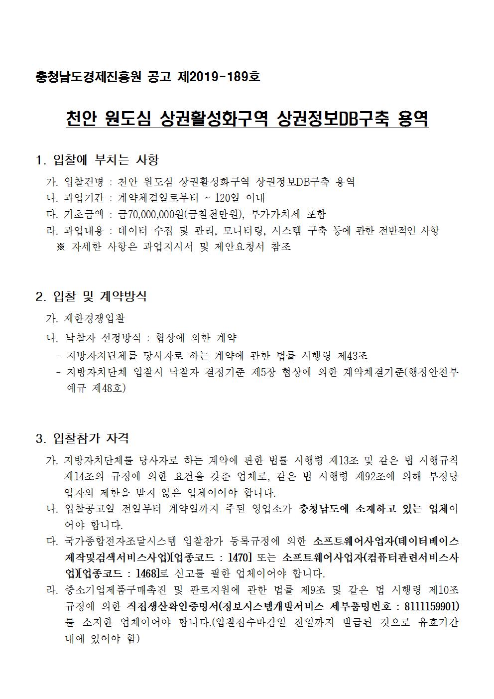 천안 원도심 상권활성화구역 상권정보DB구축 용역 공고