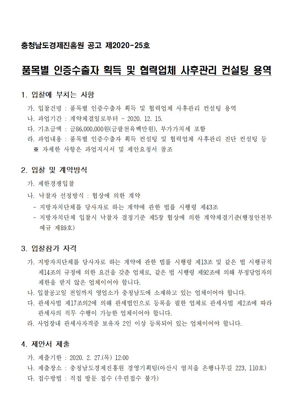 | 품목별 인증수출자 획득 및 협력업체 사후관리 컨설팅 용역 |