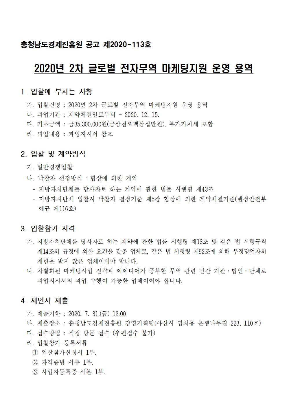 | 2020년 2차 글로벌 전자무역 마케팅지원 운영 용역 모집공고 |