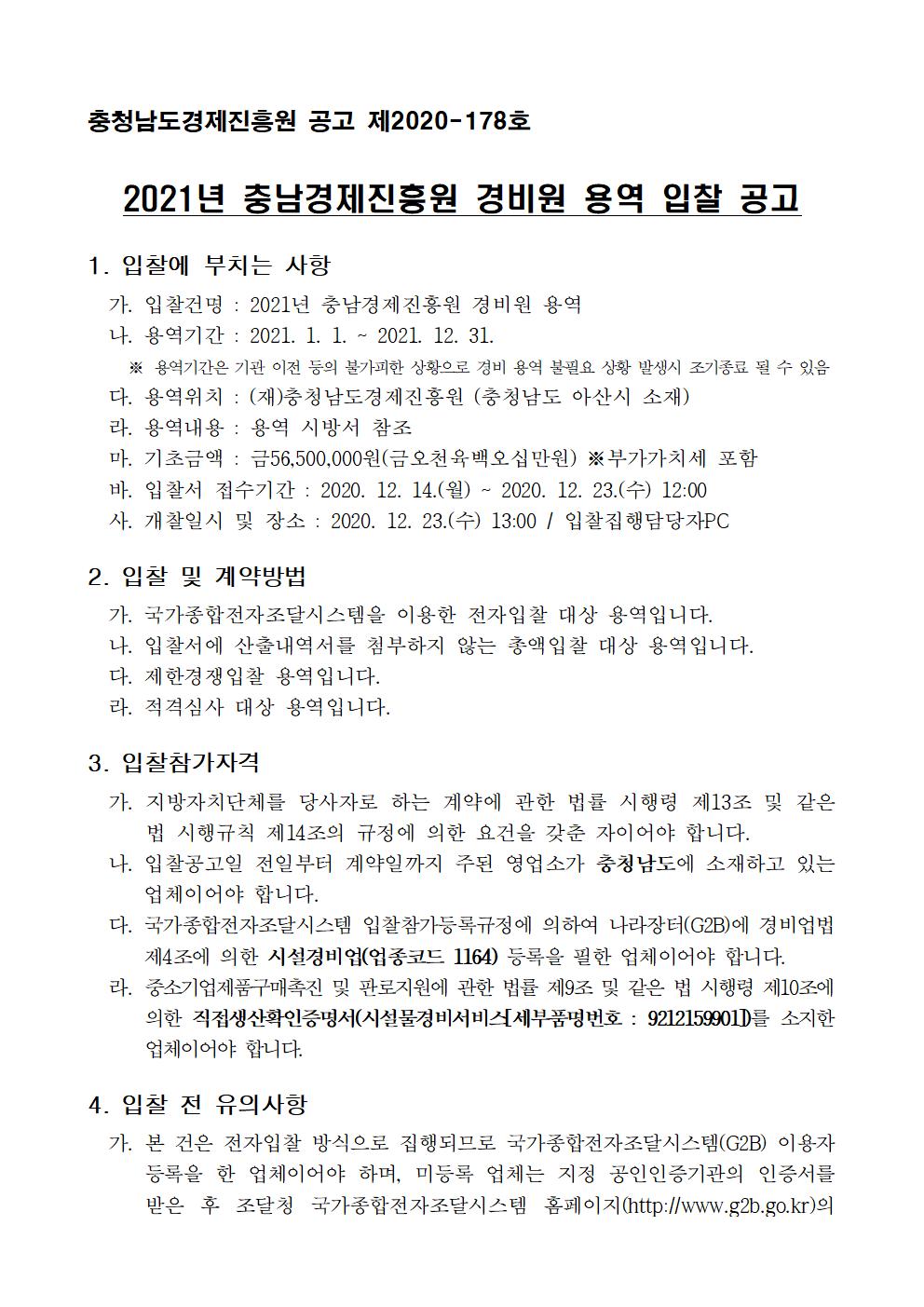 | 2021년 경비원 용역 입찰공고 |